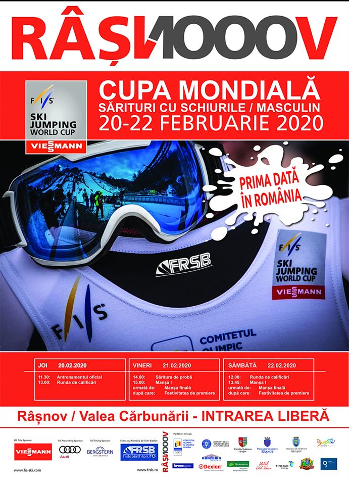 Etapa cu numărul 1000 din istoria Cupei Mondiale masculine de sărituri cu schiurile, începută în sezonul 1977-1978 se va desfășura în România, la Râșnov, stațiune care va găzdui în premieră în perioada 20-22 februarie, cea mai importantă competiție masculină a celor mai buni săritori cu schiurile din lume desfășurată pe durata unui întreg sezon.